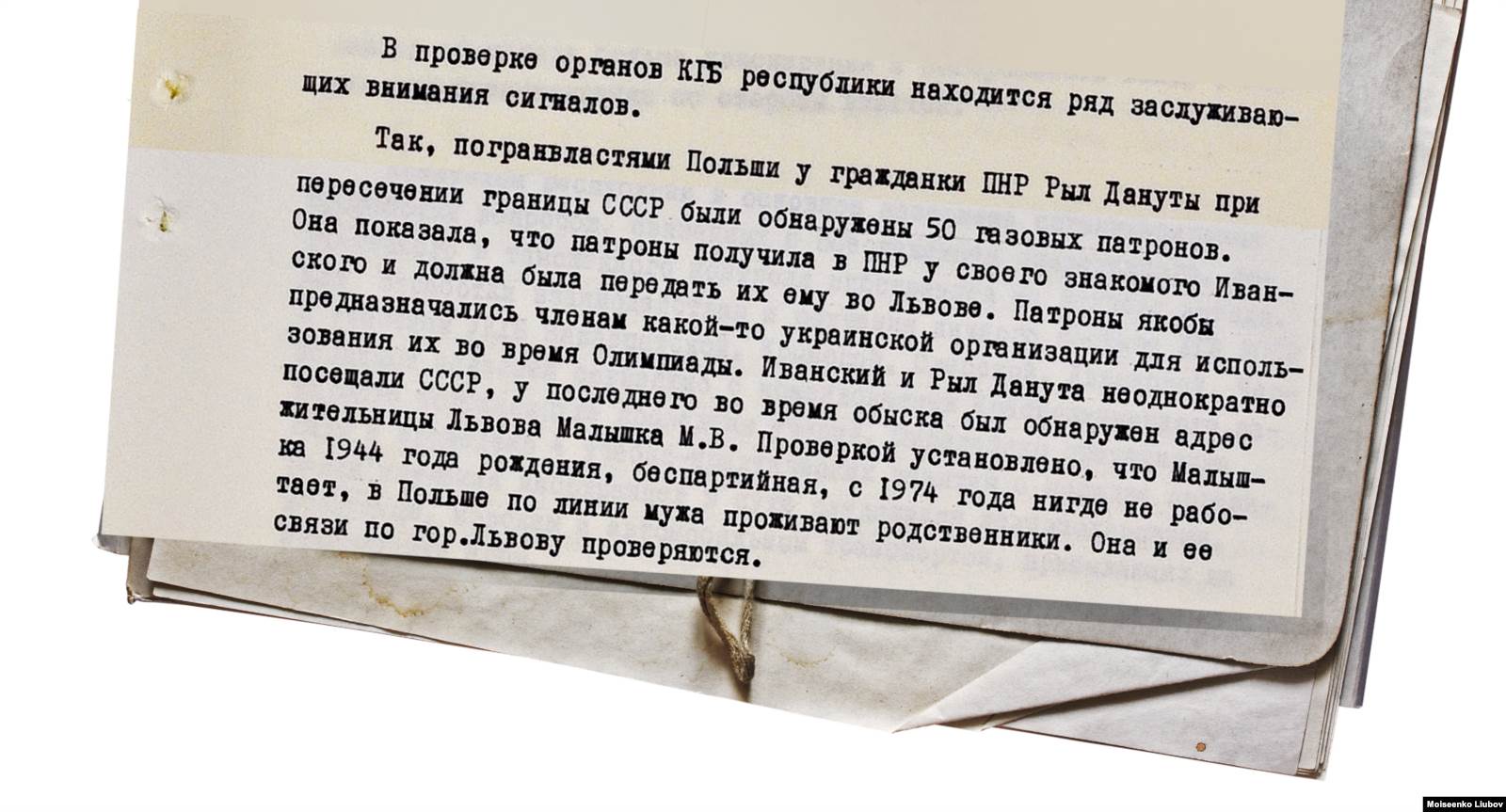 61-летняя киевлянка Клавдия Дмитришина, электромонтер, участница войны, в поле зрения КГБ никогда не попадала. Но неосторожно сгоряча сказала кому-то, что пригласит иностранных гостей Олимпиады, чтобы те посмотрели, в каких условиях она живет. Женщина жила вместе с дочерью в доме, предназначенном под снос, и пыталась получить отдельную квартиру. С Дмитришиной провели профилактическую беседу, она пообещала никого к себе не звать.