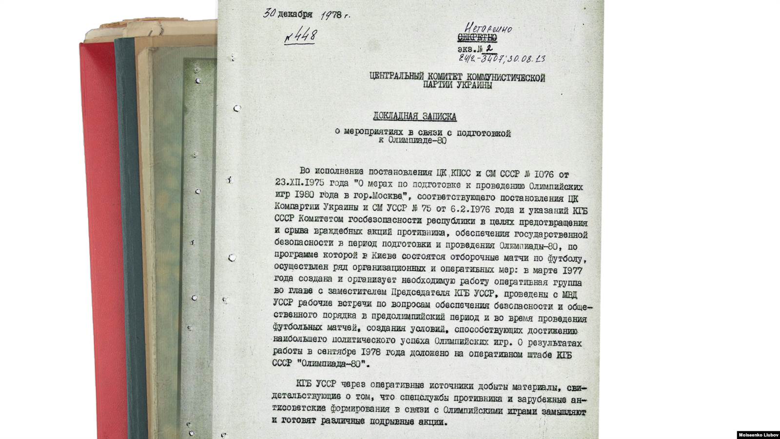 В архиве Службы безопасности Украины были найдены шесть "олимпийских" записок Федорчука, составленных в период с декабря 1978 года по июнь 1980-го. В начале первого же документа обозначено приоритетное направление работы: "КГБ УССР через оперативные источники добыты материалы, свидетельствующие о том, что спецслужбы противника и зарубежные антисоветские формирования в связи с Олимпийскими играми замышляют и готовят различные подрывные акции".