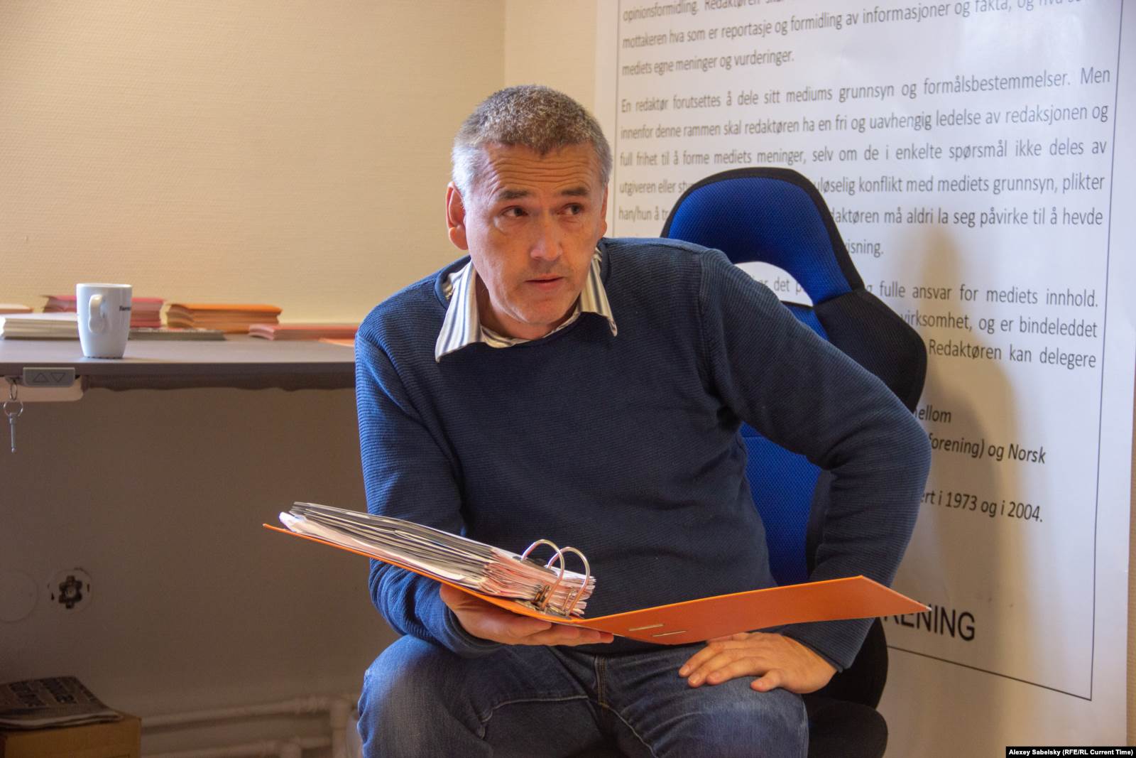 Его коллега Атле Столесен немного говорит по-русски. Оба журналиста не раз бывали в России. На подоконнике в редакции стоит кукла-неваляшка, на столе лежат значки "Шиес". На стене – большая карта северной части Евразии и прилегающей к ней Арктики с надписями на русском и английском языке: "Правда", "Свобода", "Независимость", Arctic, Justice, Society.