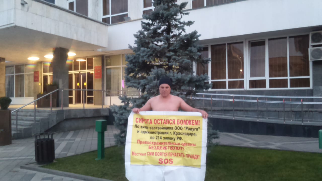 Краснодарец начал писать в полицию, прокуратуру, СК. Дело о мошенничестве возбудили спустя полтора года. Но оно не двигалось с места, а на сегодняшний день дольщики только дожидаются суда. За последние два года мужчина митинговал у здания управления Генпрокуратуры по Южному федеральному округу в Ростове, ездил в Москву автостопом и пикетировал Генпрокуратуру в столице, выходил голым на протест в Краснодаре. В 2019 году усилиями Евтенко и других дольщиков дом включили в список проблемных объектов.