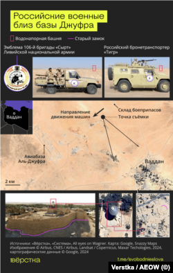 О переброске российского оружия и транспорта упоминал и специалист по Ливии, научный сотрудник Королевского объединенного института оборонных исследований Джалель Харчауи. Он также писал о передислокации российских военнослужащих на военную базу Брак аль-Шати. По его данным, численность русскоязычного персонала базы за последние недели увеличилась примерно на четверть. Мы подтвердили присутствие российских военных в этом районе.