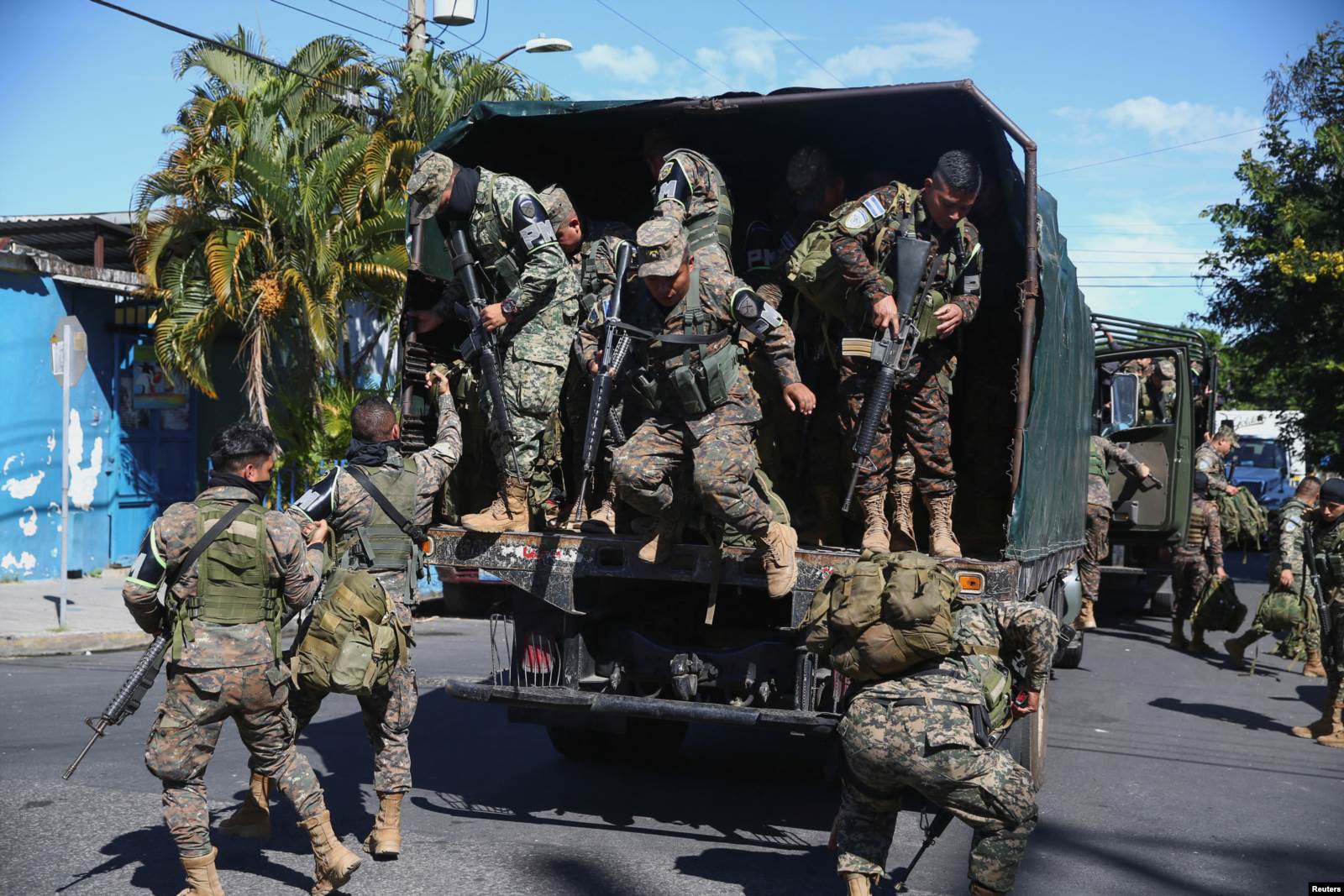 Участники операции по задержанию членов банд Мара Сальватруча и Баррио-18, декабрь 2022 года. Фото: Reuters