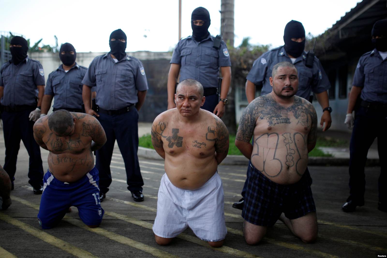 Участники группировки Мара Сальватруча (Mara Salvatrucha), задержанные полицией в августе 2017 года. Фото: Reuters