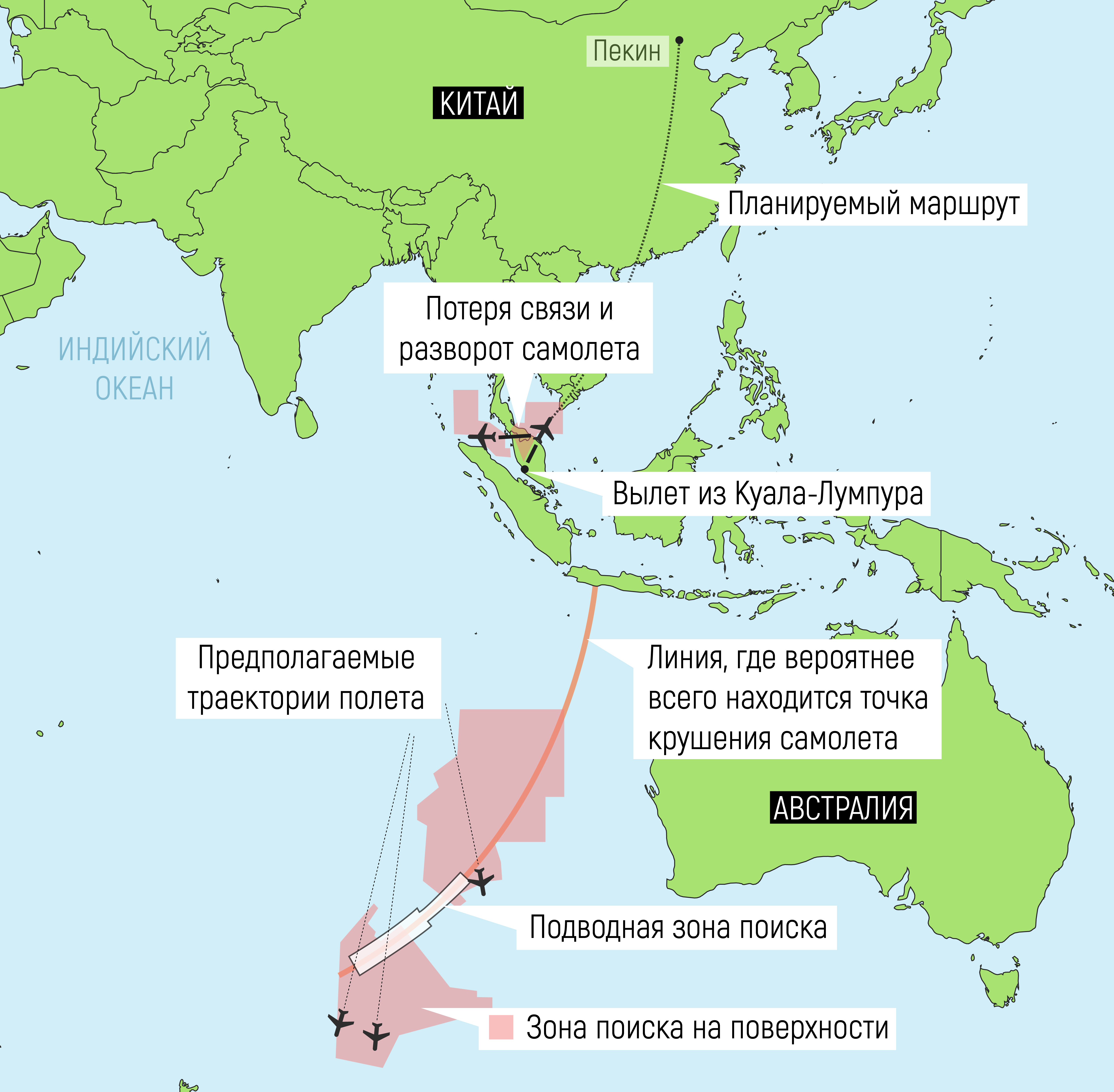 Вскоре начались поиски: Малайзия и Китай определили наиболее вероятные зоны крушения и за два года потратили примерно $142 млн на сложнейшую операцию лишь для того, чтобы уйти ни с чем в январе 2017-го.