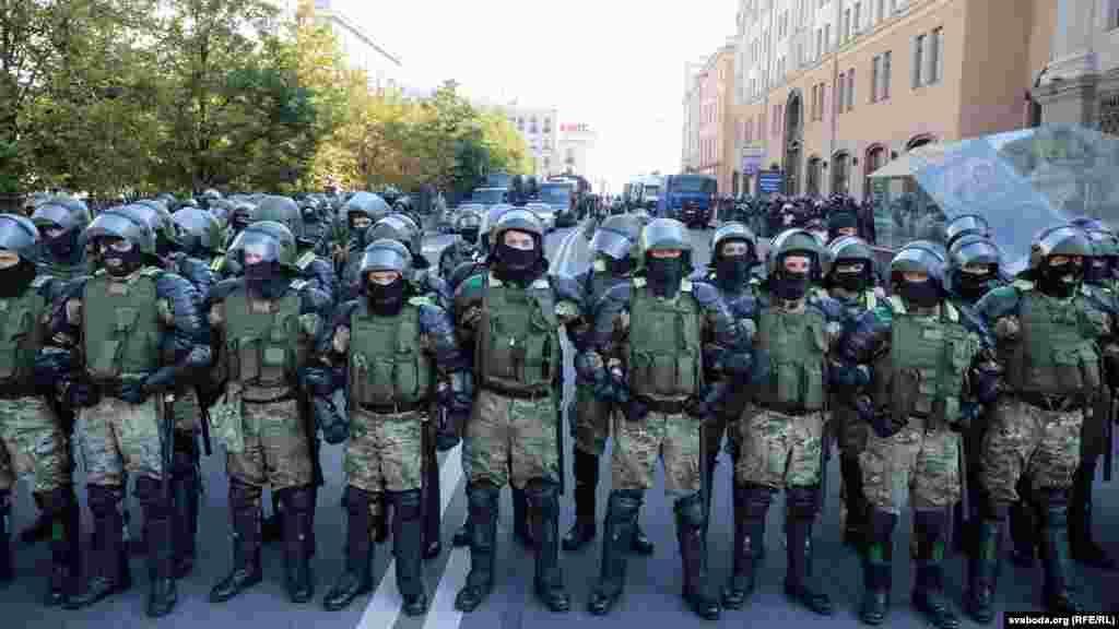 Центр города был перекрыт силовиками, на улицах стояли автозаки и водометы. В МВД подтвердили также присутствие бронетехники на минских улицах и объяснили это "усилением мер безопасности личного состава". На протяжении почти трех с половиной часов не работал интернет. МВД сообщило о задержании 140 человек: почти всех их забрали в первые два часа акции.