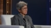 Кутузова показывает костюм, который производит ее компания, и надеется, что санкции и добровольный уход с российского рынка мировых брендов заставят россиян покупать одежду именно у отечественных компаний.