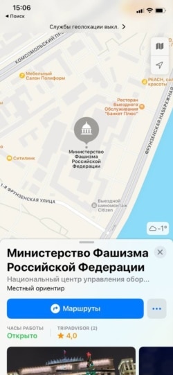 На картах Apple Минобороны России на Фрунзенской набережной отображается как "Министерство фашизма Российской Федерации".