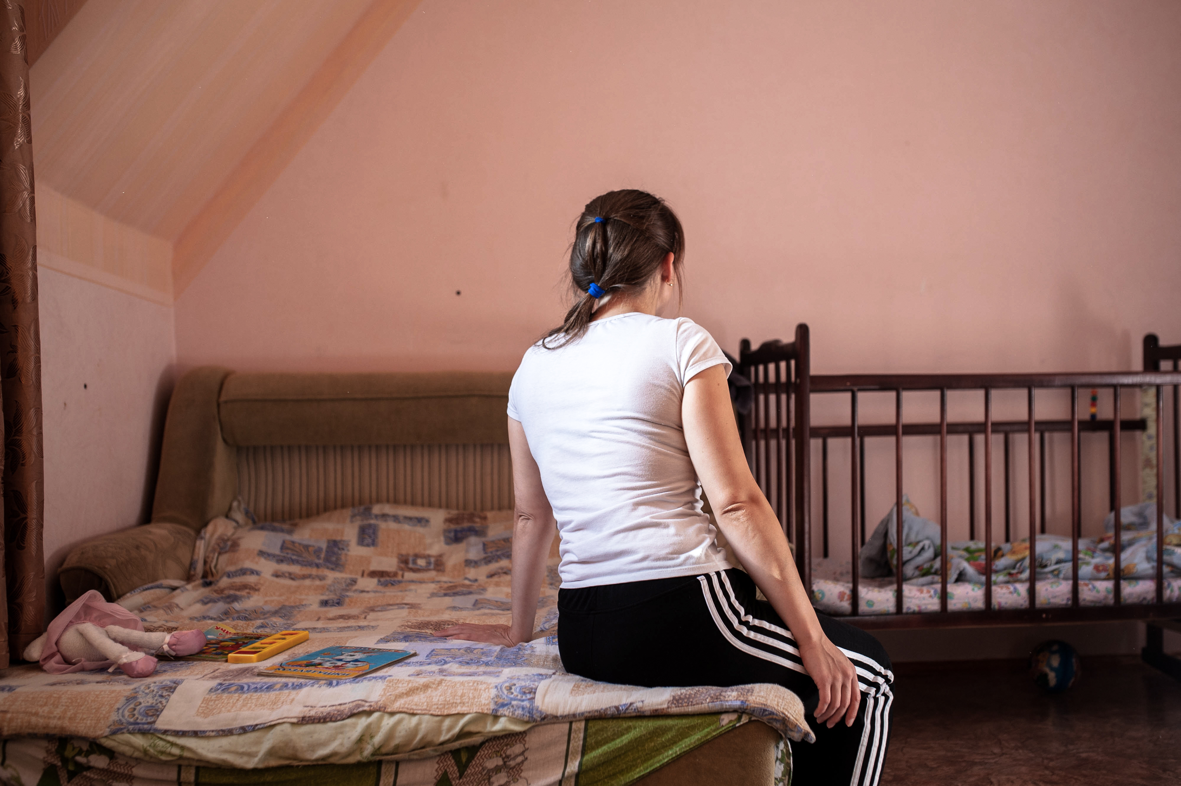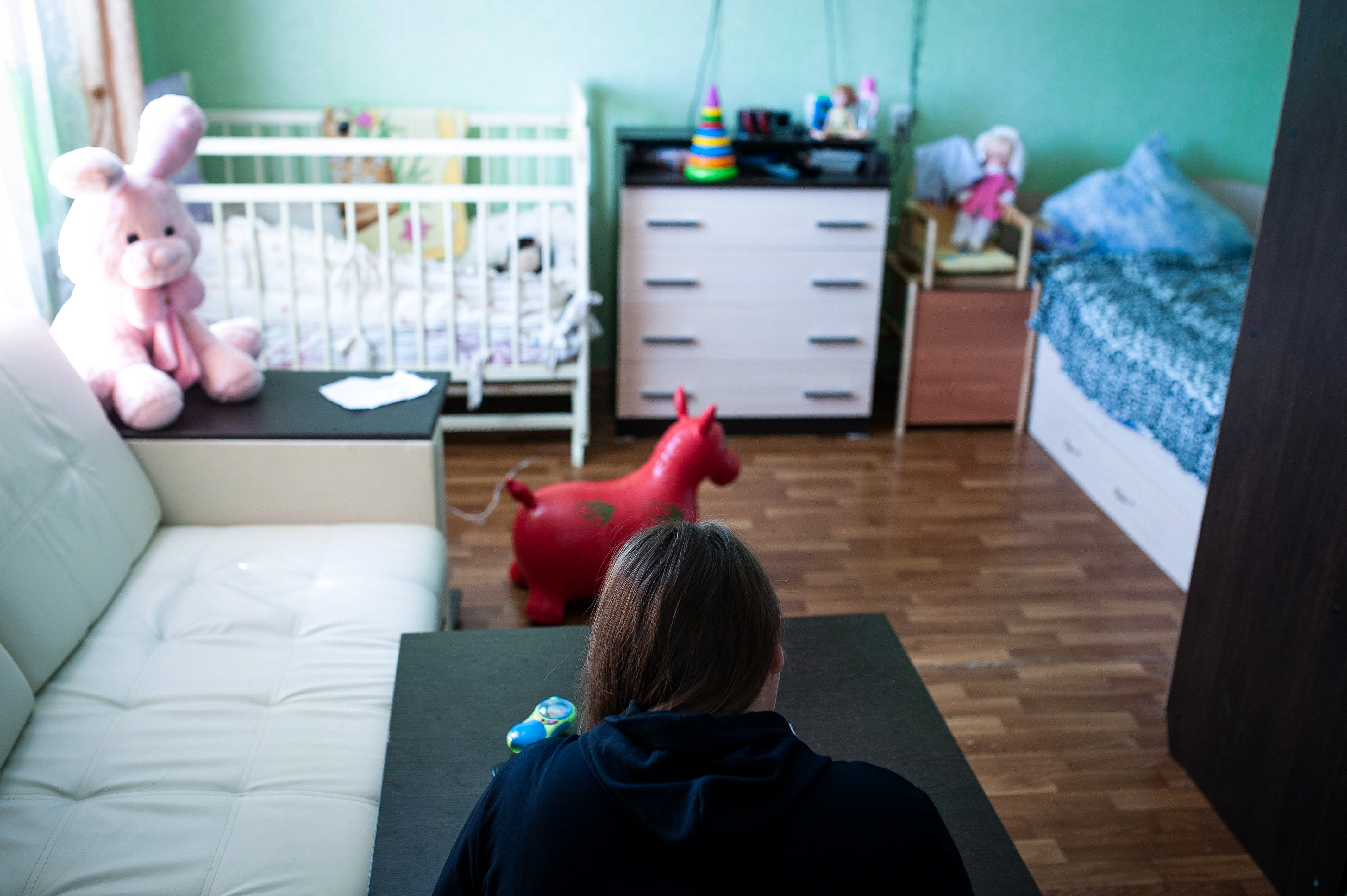 Оксана работает воспитателем в детском саду, но пока находится в отпуске по уходу за вторым ребенком. Ее гражданский муж иногда «пропадает на полгода», но «всегда возвращается». В комнате стоит детская кровать, на полу и подоконниках – игрушки. На межкомнатной двери вмятина. По словам хозяйки, это она ее неосторожно толкнула. Входную дверь можно открыть без ключа – сломался замок, и женщина его не ремонтирует. «Еще неизвестно, будет ли квартира моей, – говорит Оксана, – и стоит ли в нее вкладываться».