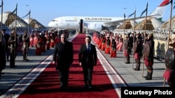 Через три года, 12 марта 2025 года между двумя лидерами можно было наблюдать прямо противоположное: долгое рукопожатие и троекратное объятие сразу после того, как Рахмон приземлился в Бишкеке, столице Кыргызстана. Главу Таджикистана приветствовали танцоры и музыканты, которые исполняли песни как на кыргызском, так и на таджикском языках. А еще в аэропорту повесили баннер с изображением Рахмона и приветствием "Его превосходительства".