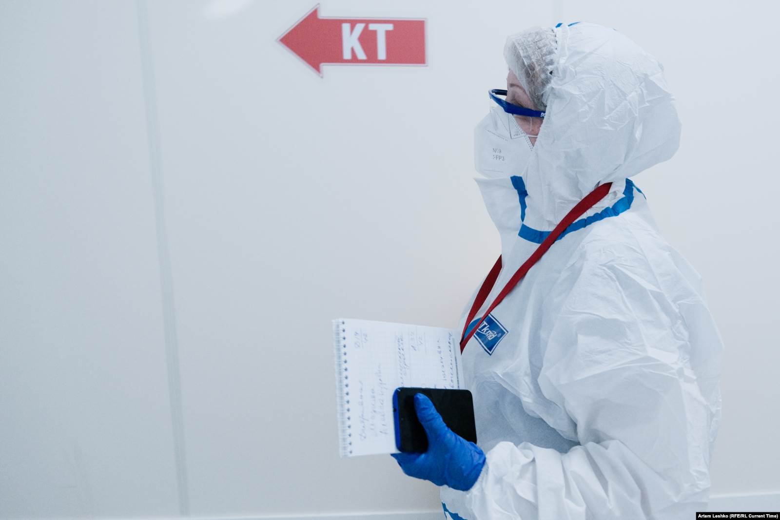Утренняя обязательная пятиминутка перед сменой – и Юлия Мохова уже спускается в "красную зону" – в белом СИЗе и синих защитных очках. Начинает обход пациентов – ревизию. На шее – бейдж с надписью "Психолог".