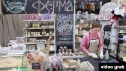 Анна Перова продает продукты из козьего молока. Ее утро сейчас начинается не с кофе, а со спирта: сантиметр за сантиметром она обрабатывает свой прилавок, потом среди дня еще много раз повторяет процедуру. Но к витрине все равно почти никто не подходит – карантин. Партнер Анны, фермер Анвар Зуфаров, раскладывает товары скорее по привычке.