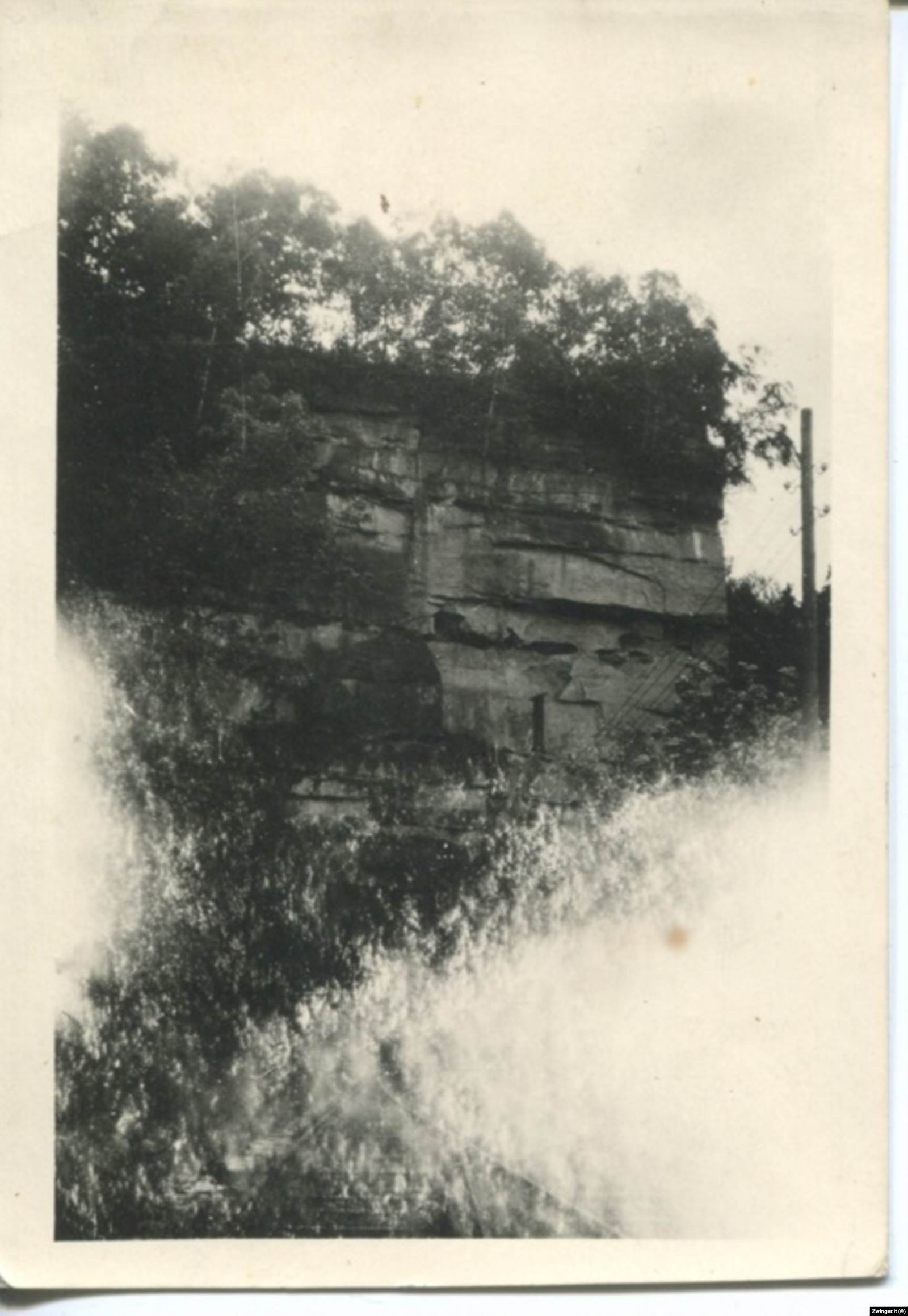 Когда-то добытый песчаник подвозили к выходу при помощи вагонеток. Теперь мы бежим, спотыкаясь в темноте о шпалы; впереди, в глубине штольни, на ржавых рельсах стоит вагон. Обычный темно-красный товарный вагон узкоколейного типа. <...> Прямо против двери – плоский некрашеный ящик, уходящий под самую крышу".