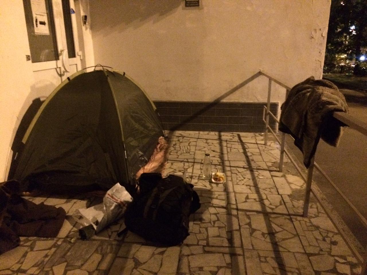 Палатка Навшервана на крыльце офиса "Гражданского содействия". Фото: личный архив