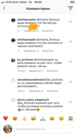 С расизмом в обычной жизни они почти не сталкивались, только Аниссу с Орфеем и его друзьями-африканцами не пустили в ночной клуб после свадьбы – без объяснения причин. Обе они подверглись травле со стороны МГ. "Несколько сообщений были с угрозами жизни, – говорит Анна. – Мы тебя найдем, тебе не скрыться, мы тебя порежем. Не думаю, что кто-то из этих людей может прийти и убить, но за здоровье было реально страшно". "Писали: "чернильница", "шлюха", что я сплю с обезьяной, желали болезни и смерти не только мне, но и моим детям", – рассказывает Анисса. Вместе с оскорблениями приходило и много сообщений поддержки, противники МГ спорили с его сторонниками в комментариях, все это превращалось в поток взаимных оскорблений. Анисса рассказывает, что нападавших на нее упрекали в том, что они прячутся за закрытыми профайлами, в итоге один из них открыл свою страницу, оказалось, что он работает в Росбанке. "Мои подписчики сразу обратились в банк, чтобы наказали этого человека. Банк попросил у меня прощения за него, сказали, примут это все во внимание, потому что их филиалы есть и в Африке, и сотрудники должны быть толерантными", – говорит Анисса.