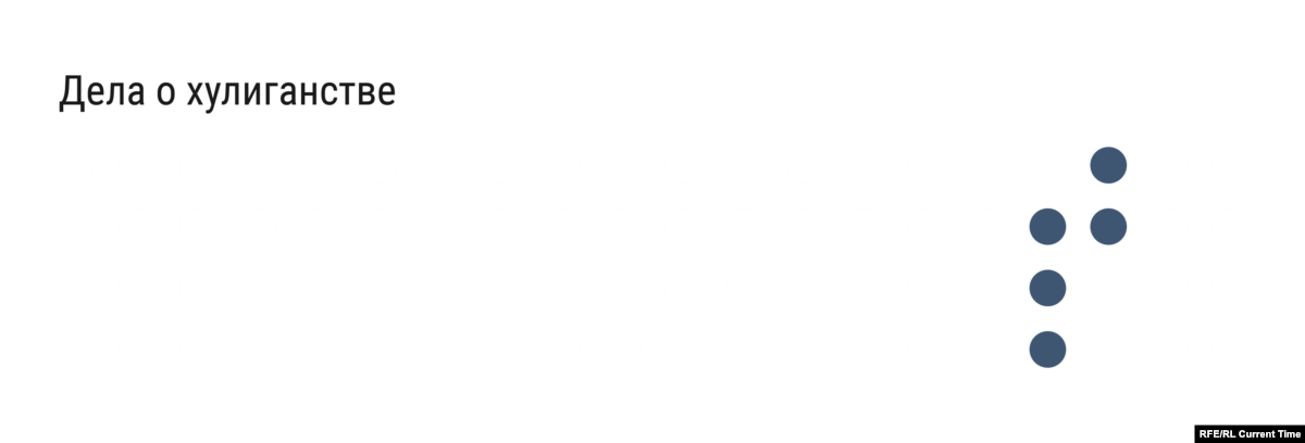 По статье "Хулиганство" по всей России было заведено пять дел. Одно из них – в Краснодаре, в отношении 17-летнего подростка, который оголил ягодицы на памятнике Кубанскому казачеству. Другое дело в Москве завели в отношении тиктокера Кости Киевского за то, что во время протестов он остановил машину на проезжей части и распылил газовый баллон. Машина принадлежала одному из силовых ведомств России.