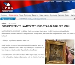 Накануне прокуратура Боснии и Герцеговины начала следствие по делу иконы, которую председательствующий президиума Боснии и Герцеговины, представитель сербов Милорад Додик подарил министру иностранных дел России Сергею Лаврову во время его пребывания в Сараеве 15 декабря.