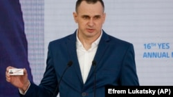 Освобожденный из российского заключения украинский режиссер Олег Сенцов на форуме "Ялтинской европейской стратегии" (YES) в Киеве передал президенту Украины Владимиру Зеленскому символическую банку, которая, по его словам, "очень раздражала российских тюремщиков". Банку из-под чая Сенцов еще в российской тюрьме обклеил синей и желтой лентами, написав на ней "Слава Украине!"