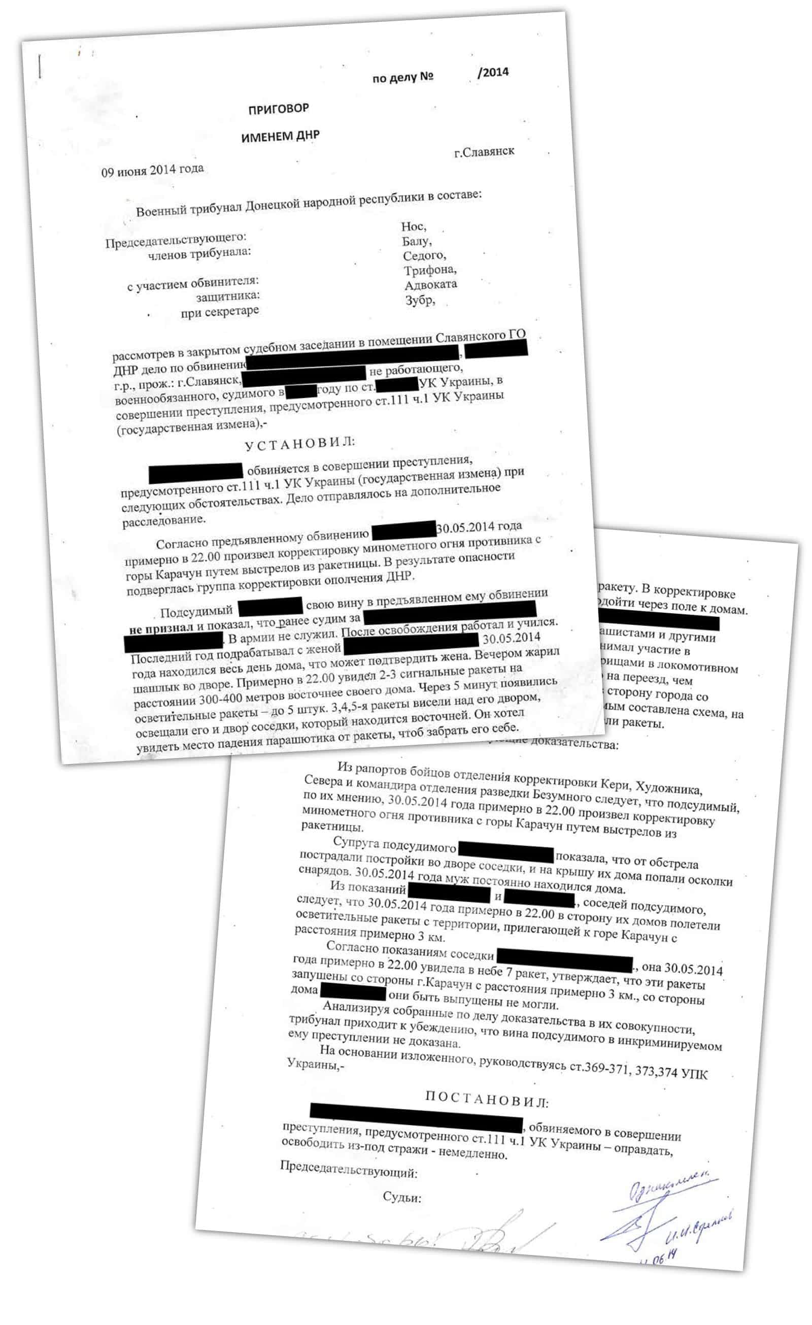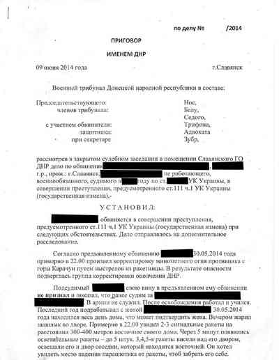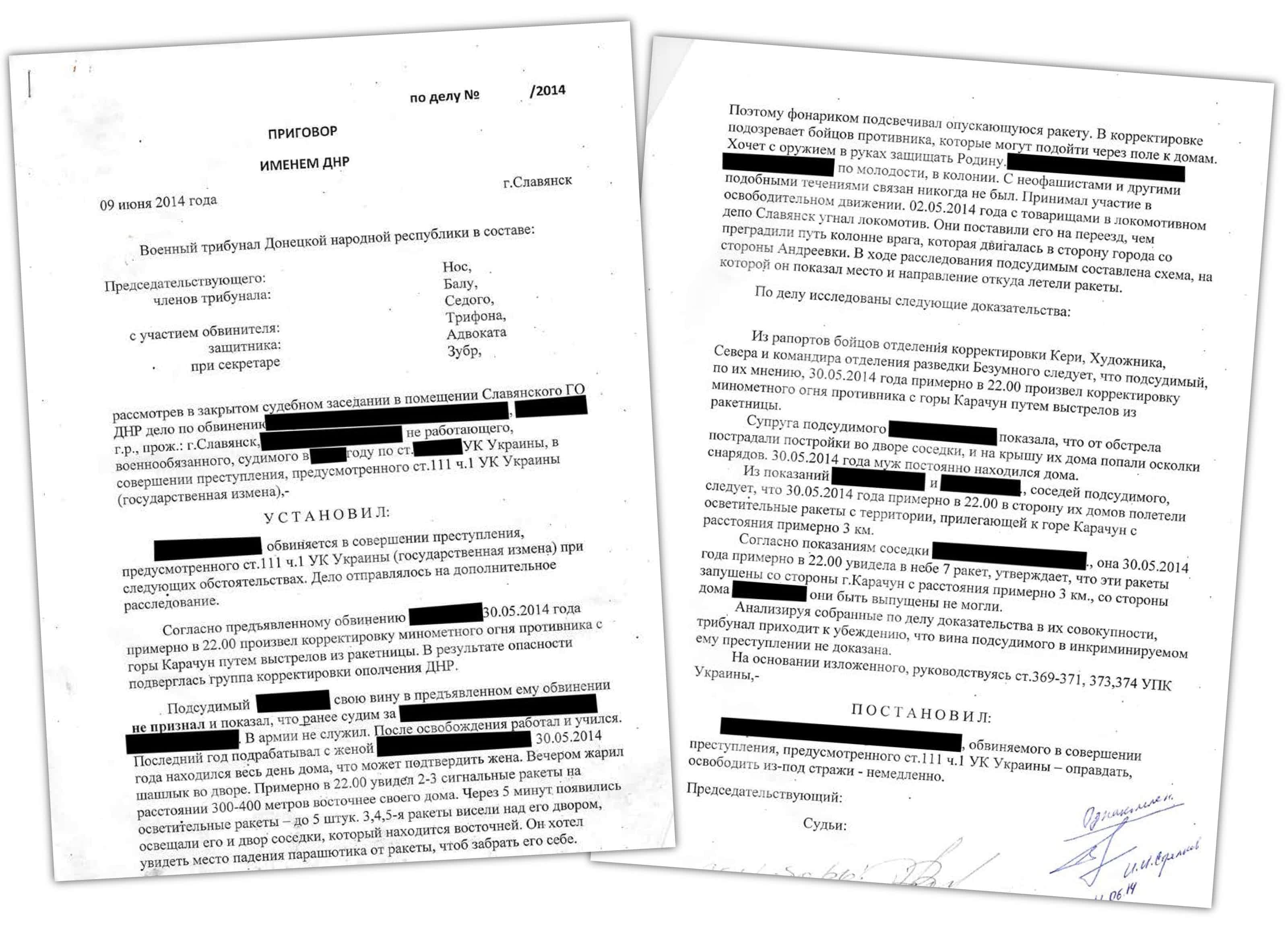- 8 Хотя поддерживаемые Россией сепаратисты объявили независимость от Киева, "трибунал" ссылается на украинский уголовный кодекс в резолютивной части постановления.