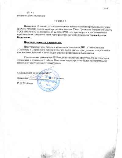 - 1 В качестве юридической базы казней Гиркин ссылается на указ Президиума Верховного Совета СССР от 22 июня 1941 года, вводящий в стране военное положение.