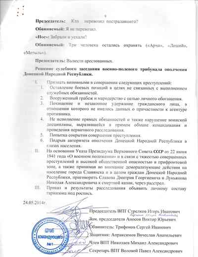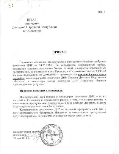 - 4 Гиркин подписывает приказ о расстреле, используя позывной "Стрелков".
