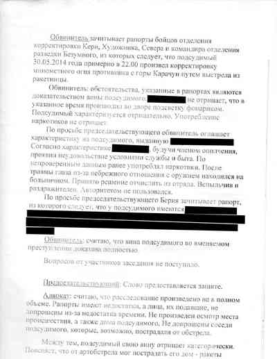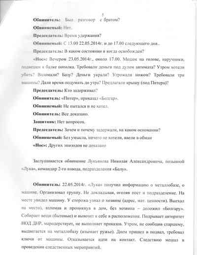 Подпись человека с позывным “Адвокат” встречается на многих страницах документов, найденных журналистом Радио Свобода в Славянске. Он был прокурором на заседании "трибунала", когда был вынесен приговор Пичко, защищал обвиняемого в измене, который был оправдан, опрашивал свидетелей и обвиняемых по делам Пичко, Славова и Лукьянова и по делу оправданного “наводчика”, кроме того, осматривал места преступлений.