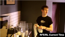 У Кати нет проблем с речью, она выглядит обычной девушкой, только очень робкой. Не расслышав моего вопроса, она испуганно извиняется несколько раз подряд. "Работа в кафе очень благотворно на Юлю влияет, – говорит Маша Грекова. – Раньше с ней было сложно начать как-то коммуницировать, любое слово или резкое движение вызывало в ней панику, тихую истерику". Сейчас Катя с удовольствием работает на кухне, помогает печь торты, делает сырники из тофу и бананов, работает в баре. На каждого особенного официанта в кафе приходится по двое обычных работников, кроме выполнения основных обязанностей, они дают задания и присматривают за своими необычными коллегами.