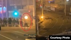 "Еврорадио" опубликовало видеозаписи с нескольких ракурсов, которые в редакцию прислали очевидцы случившегося. На кадрах видно, что Тарайковский подходил к кордону силовиков с пустыми руками, поднятыми над головой. На записи слышны хлопки, вскоре после этого мужчина начал шататься и упал на землю.