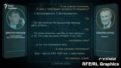 Как следует из расшифровки прослушки, весной-летом 2015 года Крючков активно общался с Кононенко и Суркисами и обсуждал с ними "Запорожьеоблэнерго", "Черкассыоблэнерго" и "Харьковоблэнерго", и в том числе распределение между участниками схемы значительных денежных сумм наличными.