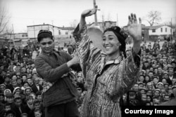 Женщины советского Узбекистана танцуют на празднике: