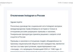 Портал Госуслуги, с помощью которого россияне оплачивают штрафы и оформляют документы, рассылает предупреждение о блокировке Instagram.