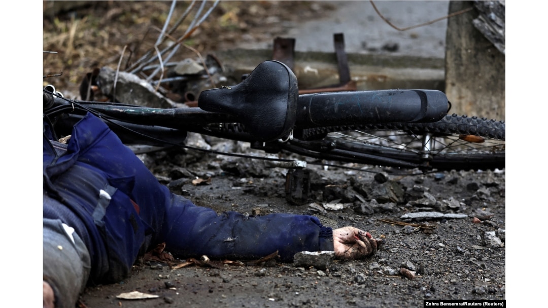 Утром 3 апреля журналисты и украинские власти сообщили о десятках погибших людей на улицах города Буча к северо-западу от Киева. Фотографии погибших в гражданской одежде, иногда со связанными руками, опубликовали Reuters, УНИАН, AFP.